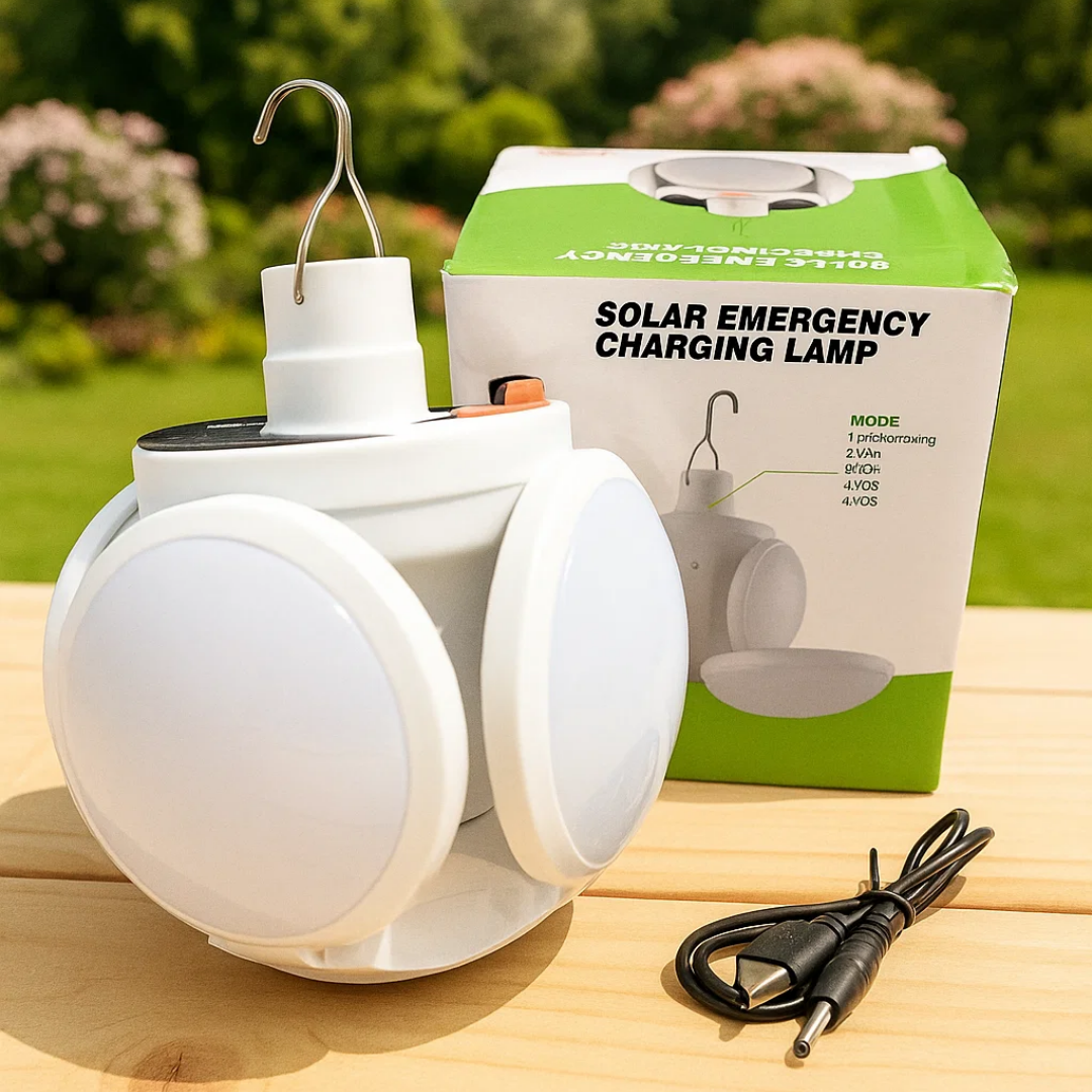 Esta lámpara solar 2 en 1 ofrece un diseño único, combinando eficiencia y flexibilidad. Con su panel solar integrado, cinco bombillos para una mejor distribución de la luz y la posibilidad de colgarla donde lo necesites, es la opción perfecta para quienes buscan iluminación económica, práctica y ecológica sin necesidad de instalaciones complicadas.