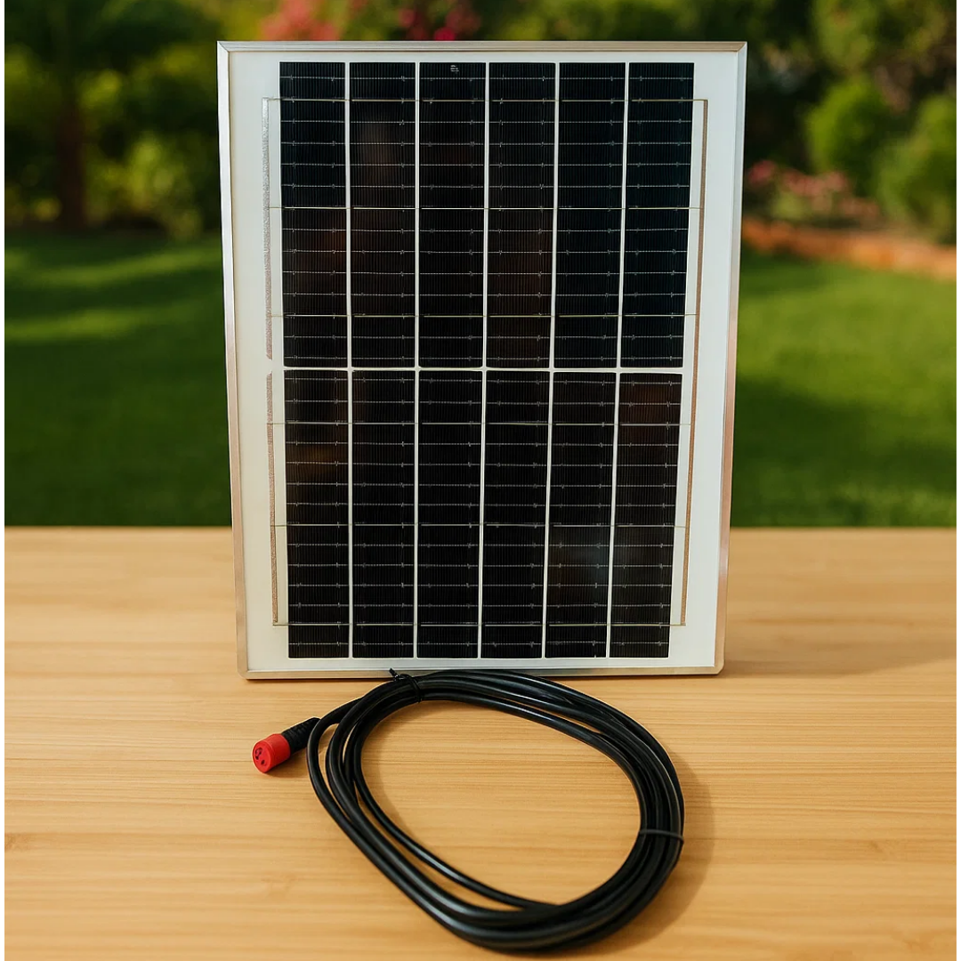 El panel solar viene por separado, permitiendo una instalación flexible en el lugar ideal para maximizar la captación de energía solar. Gracias a su diseño eficiente, el reflector se carga rápidamente durante el día y proporciona iluminación constante durante la noche, sin cables ni instalaciones complejas.