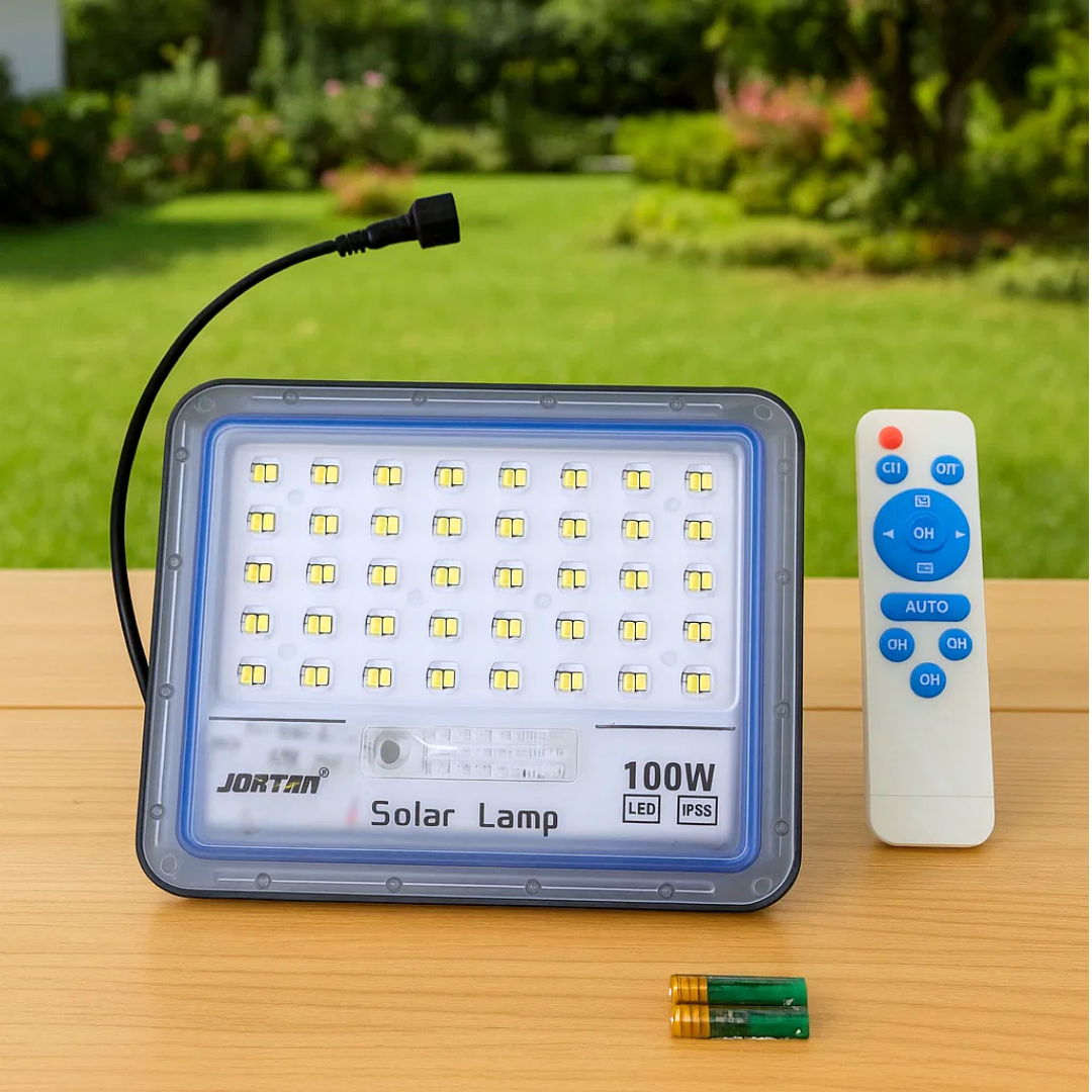 Nuestro reflector solar de 100W es la solución perfecta para quienes buscan una iluminación de gran alcance en exteriores. Ideal para jardines amplios, caminos o áreas de trabajo al aire libre, este reflector ofrece una luz extensa y potente, asegurando visibilidad durante la noche sin depender de fuentes de energía externas.