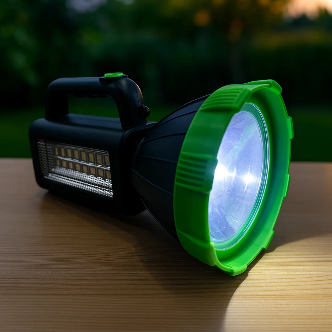 Esta linterna solar con reflector integrado está diseñada para ofrecer una iluminación sorprendente, mucho más potente que las linternas comunes. Su haz de luz llega a grandes distancias, lo que la convierte en tu mejor aliada tanto en emergencias como en actividades al aire libre. No importa si estás en casa, en la finca o acampando: siempre tendrás claridad y seguridad.