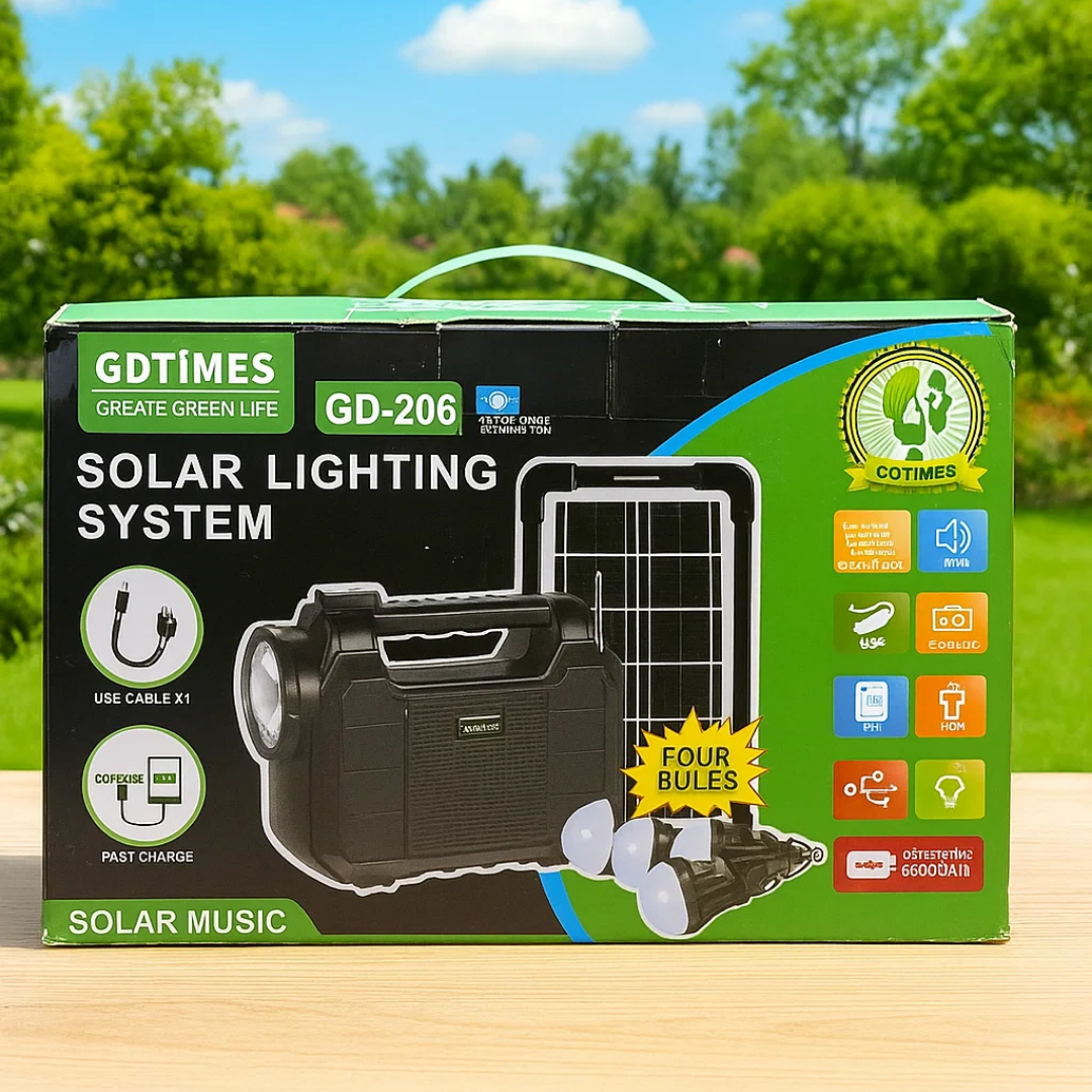 El panel solar incluido carga la linterna durante el día, garantizando que tengas energía limpia y renovable para iluminar tus noches. El panel solar se conecta fácilmente al producto, asegurando una carga eficiente para todas sus funciones, incluyendo los bombillos y la radio. Con esta linterna, no solo ahorras energía, sino que también contribuyes al cuidado del medio ambiente.