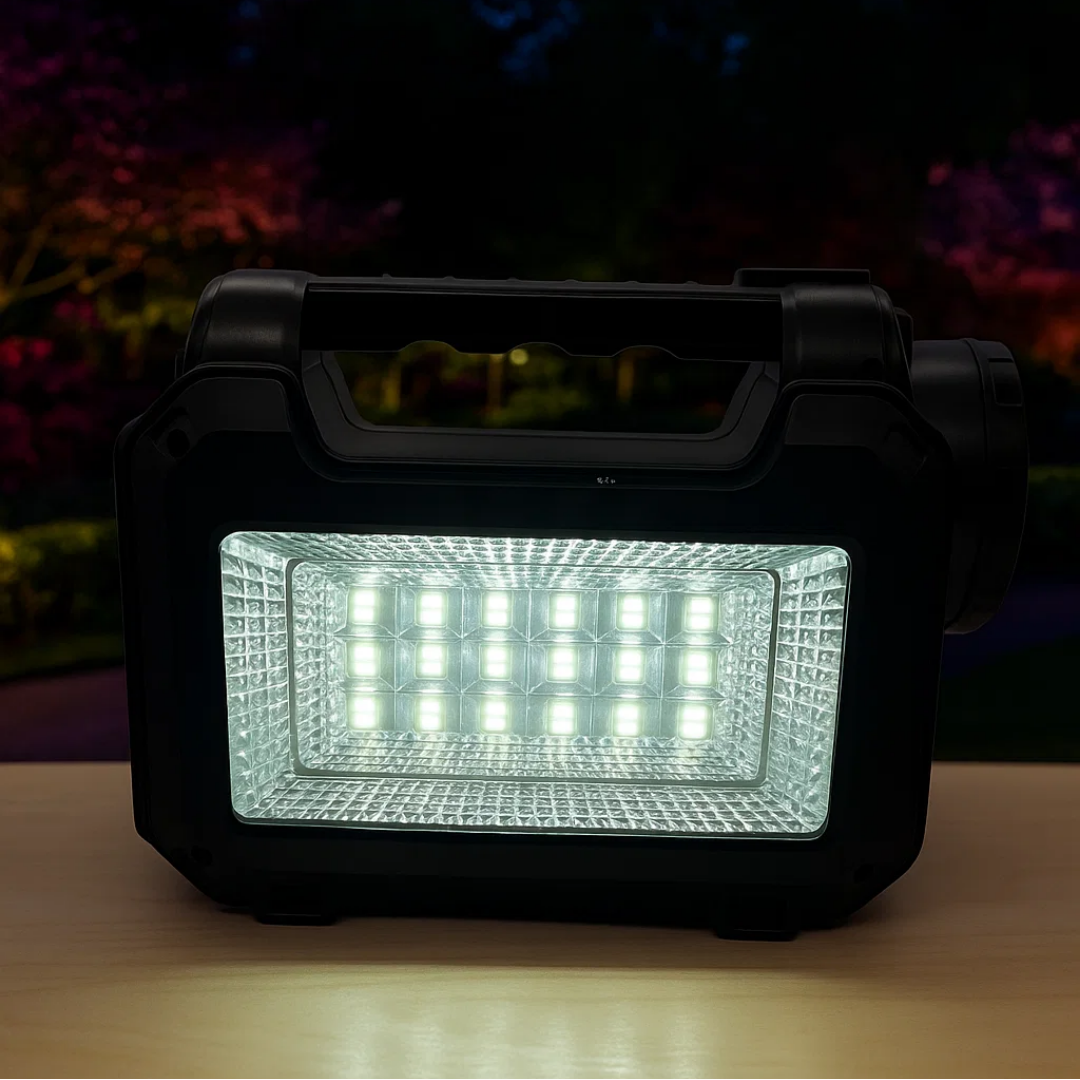 La Linterna Reflector 80W con Radio y Funciones Adicionales es mucho más que una simple fuente de luz. Además de sus potentes 4 bombillos auxiliares, este producto cuenta con radio AM y FM, lo que te permite disfrutar de tus estaciones favoritas mientras iluminas tu espacio. Perfecto para camping, áreas exteriores o emergencias, este producto tiene todo lo que necesitas para iluminar y entretenerte al mismo tiempo.