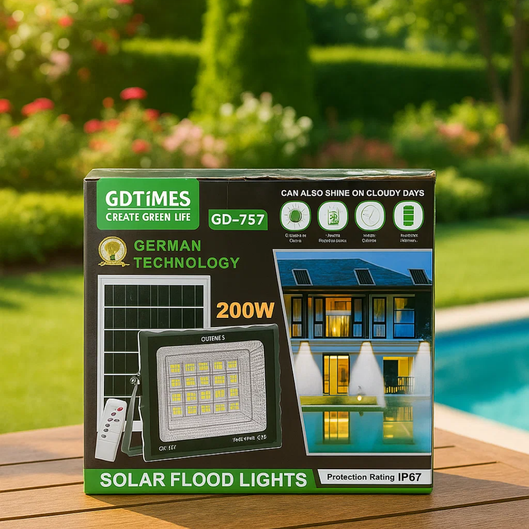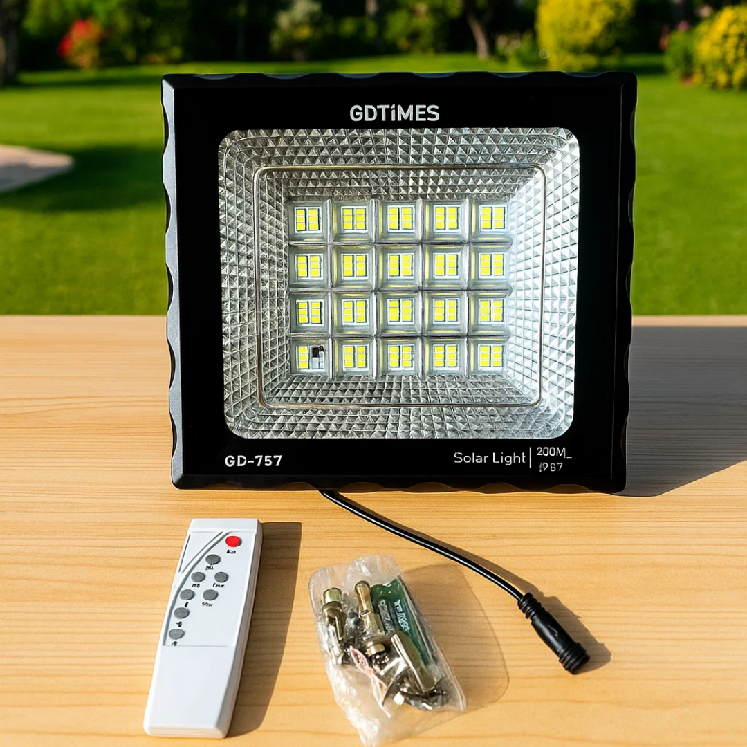 El reflector solar de 200W es ideal para iluminar grandes espacios exteriores como jardines, entradas, patios, fachadas o zonas de trabajo. Ofrece una luz intensa y de amplio alcance, perfecta para mejorar la seguridad y visibilidad durante la noche. Su diseño está pensado para brindar alto rendimiento y durabilidad, incluso con uso frecuente.